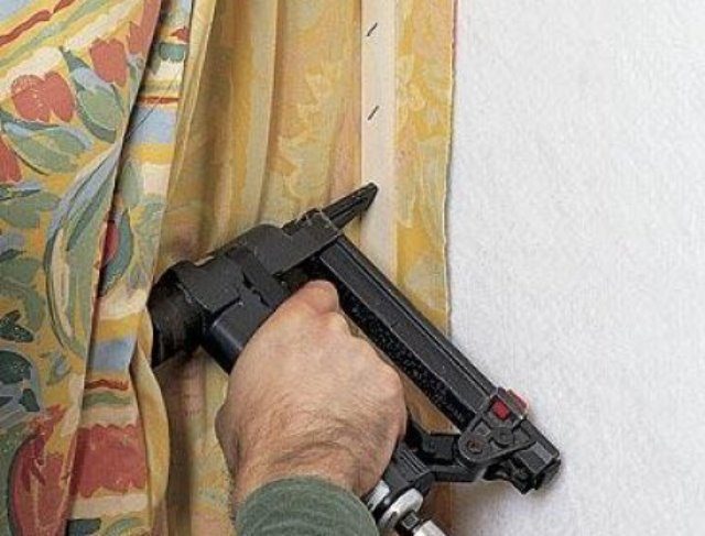Чтобы ткань снизу и сверху максимально долго не обтрепывалась, нужно правильно установить ее размеры и добавить к полученным величинам по 2-3 см. Излишки подворачивают и маскируют под рейкой.