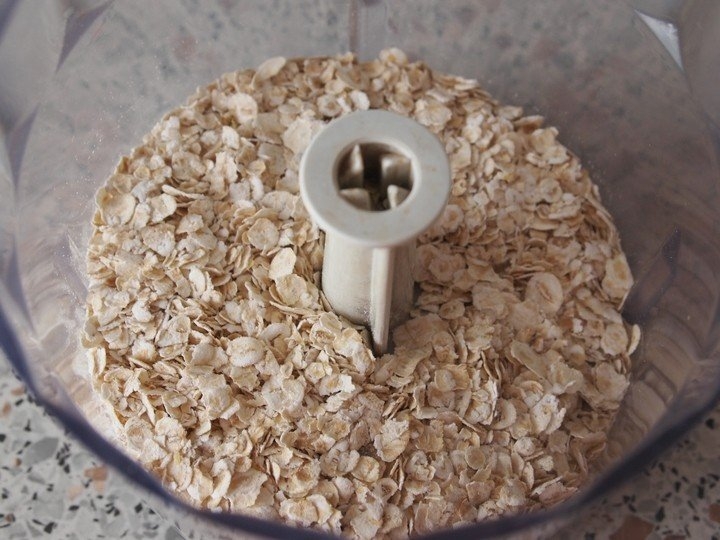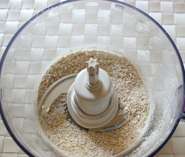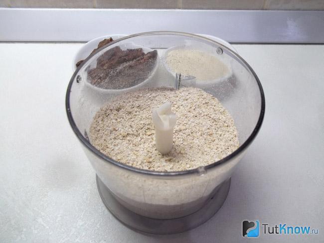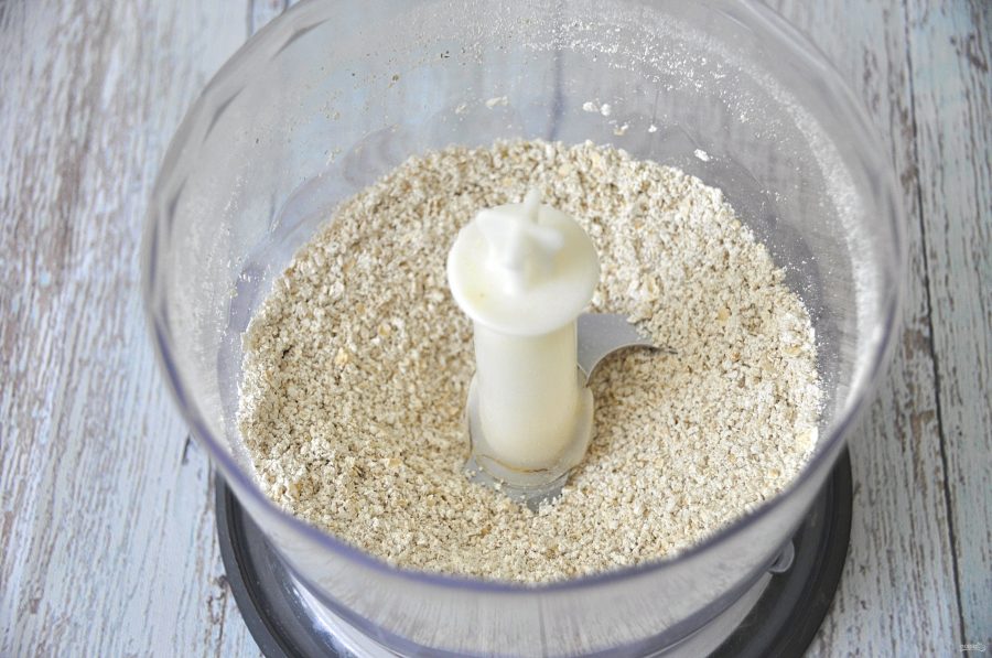 - Овсяные хлопья перемолоть до порошкообразной консистенции.