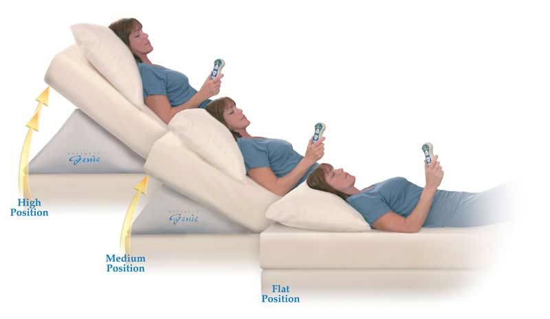 - В качестве альтернативы можно использовать лечебную клиновидную подушку для имитации приподнятой кровати. Это именно то, на что это похоже — более жесткая клиновидная подушка. Это, однако, может привести к боли в шее.