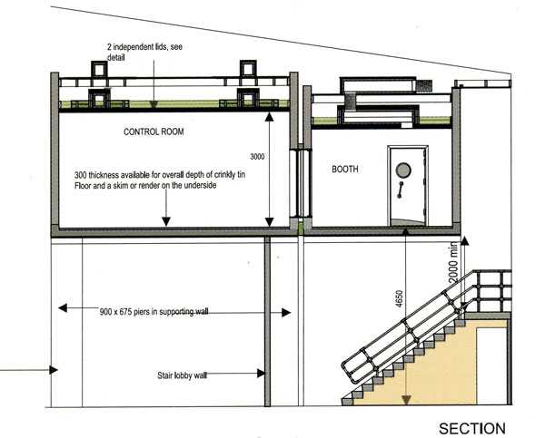 Звукоизоляционные конструкции студии всегда достаточно массивны, и иногда приходится укреплять плиты перекрытия верхних этажей, а на нижнем уровне укладывать фундаменты под опорные элементы.