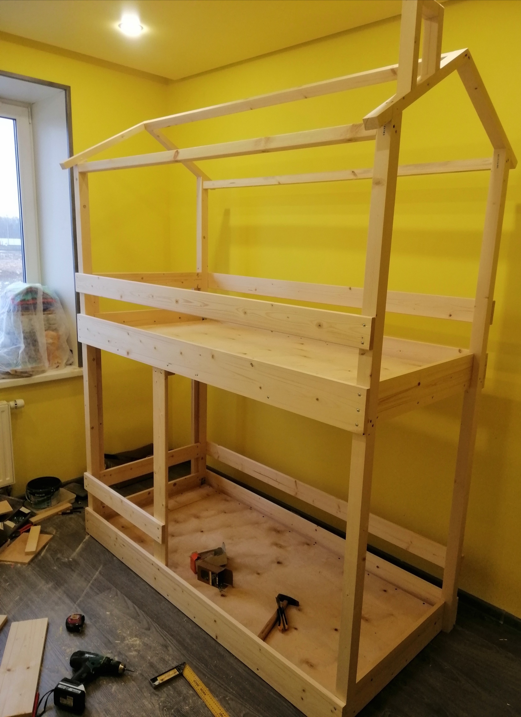 Я не понимала, какая это боль – делать двухъярусные кровати, пока мы не купили их для общей спальни мальчиков. Это заставляет меня потеть. Без шуток. Повозившись некоторое время с кроватями, я подумал: «Должен быть лучший способ!» Когда я погуглил «как сделать двухъярусную кровать», все, что я нашел, было кучей руководств о том, как построить двухъярусные кровати. Не то, что я искал.