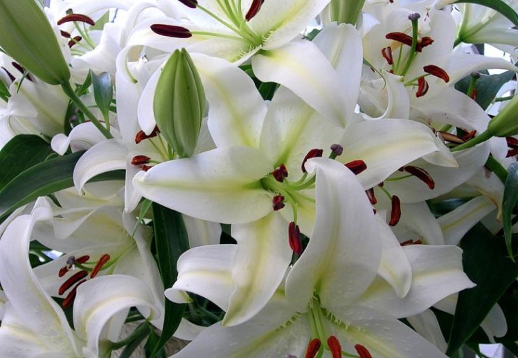 Лилии погружают в холодную воду, расщепив концы на 3-5 см. Пыльники на тычинках обязательно удаляют, так как в этом случае цветки не загрязняются пыльцой и дольше цветут.