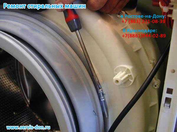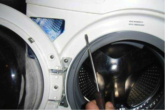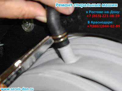 И последнее следует отцепить манжету от барабана, которая закреплена к стиральной машинке
