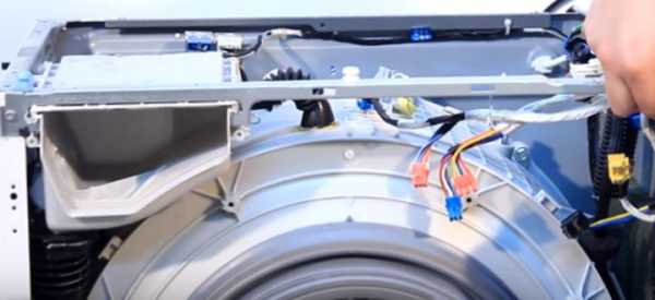 После выполнения этих работ можно начинать вынимать бак и барабан машины. Процесс выемки бака – очень трудоемкий, поэтому выполнять его в одиночку не рекомендуется. Обязательно нужен помощник. Прежде, чем начать вынимать бак, необходимо отсоединить электропроводку от ТЭНа (теплонагревательного элемента), а также подходящие к нему трубопроводы. Затем отсоединить провода от двигателя.