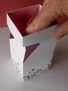 Продолжаем оклейку стенок. Наносим клей как показано здесь, прижимаем рукой ту часть упаковки, которая находится по обе стороны уже склеенной стенки, и ждем застывания клея примерно 30-40 секунд. После чего переходим к другому углу. И так проклеиваем 4 угла.