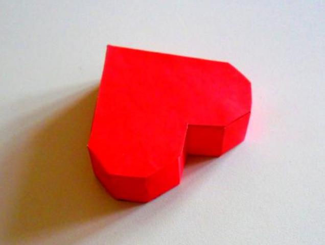2. Коробочка получилась у нас практически в несколько движений. Сцепляем прорези и получаем замочек-сердечко!