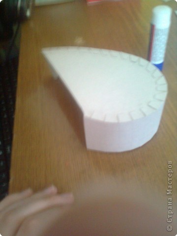 11. Приклеиваем боковины к нашим основам. Боковины с размером 19,5 см приклеиваем к основе с нарисованным посередине карандашом самым маленьким сердечком. Это наша нижняя часть шкатулки. Соответственно боковины с размером 20,5 см. приклеиваем на основу (из двух склеенных сердечек) с нарисованным сердечком среднего размера. И это наша крышка от шкатулки. Мне было удобнее наносить клей непосредственно на зубчики. Темные пятна по краю картона это чернила, которыми я тонировала края.