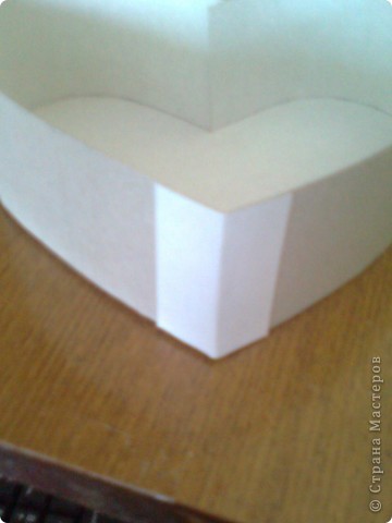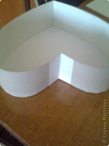 Потом делаем вторую половинку коробки. Проделываем все тоже самое с оставшымися 4 половинками сердец и полоской с загнутыми краешками. Что бы получились 2 вот таких заготовки для коробочки.