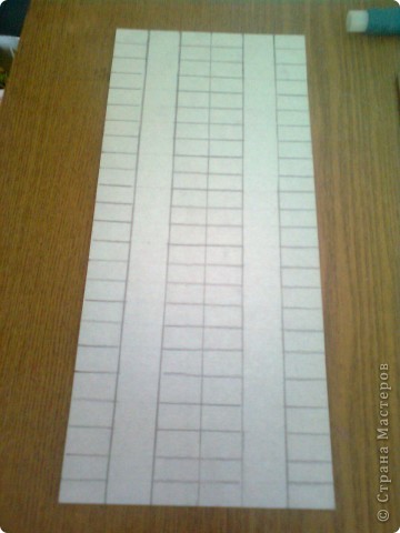 Затем нам нужно расчертить вот такую табличку(это образец) разрезать ее по палам,что бы получилось 2 полоски. Центральная белая полоска должна быть такой ширины какой вы хотите что бы была высотой ваша коробочка. В моем случае высота 4,5 см.