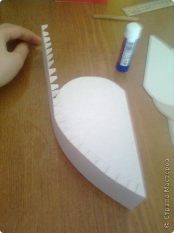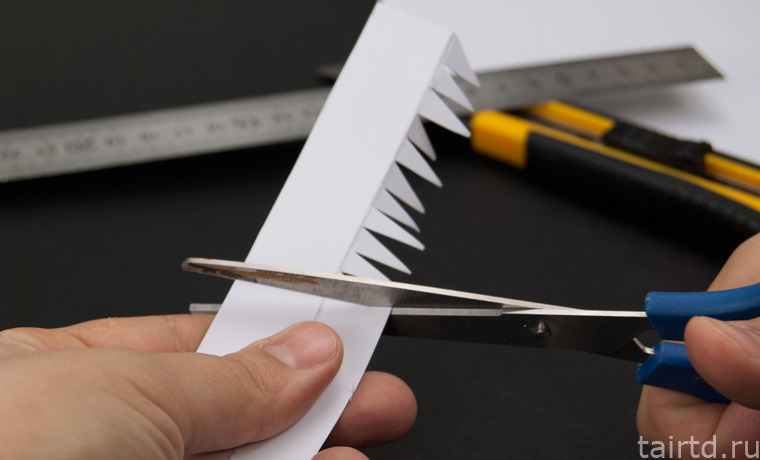 Вырезаем зубчики. Это довольно скучное и монотонное занятие, но именно частокол узких зубчиков поможет нам добиться ровных и плавных изгибов стенки коробки по форме сердца.