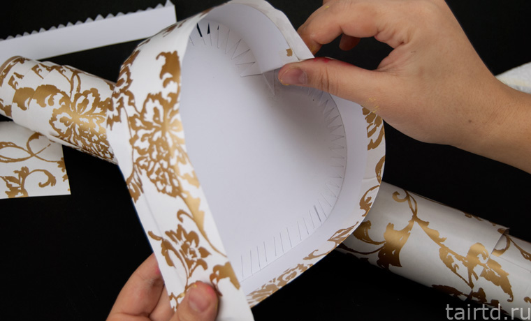 Излишки бумаги снизу лучше всего тоже загибать с помощью «зубчиков».
