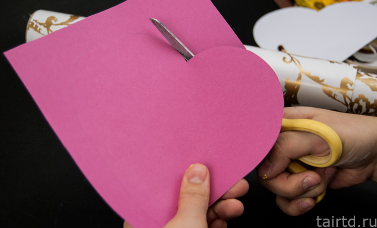 Такое же сердечко из розового картона вырезаем для нижней части коробки. С крышкой повторяем те же манипуляции.