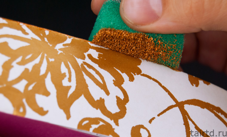 Обрабатываем края коробки и крышки, тампуя их золотой краской «Деколор».