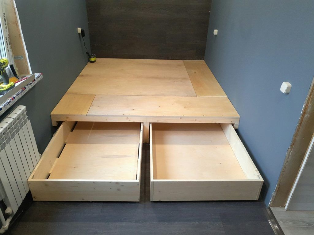 предварительно необходимо предусмотреть устройство ящиков. В них можно хранить