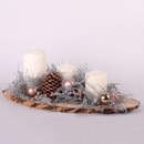 Далее даем нашему подсвечнику хорошенько подсохнуть, затем устанавливаем свечи. Готовясь к определенному торжеству, например, к Рождественским праздникам, можно воспользоваться дополнительным декором в виде еловых веток, мишуры, шишек.