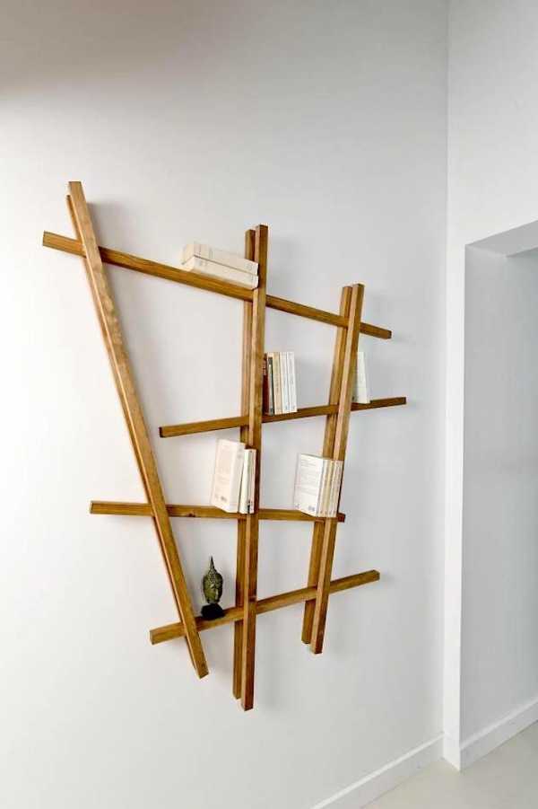 Интересное решение для организации книг, которое можно воплотить в жизнь с помощью деревянных досок и фантазии.