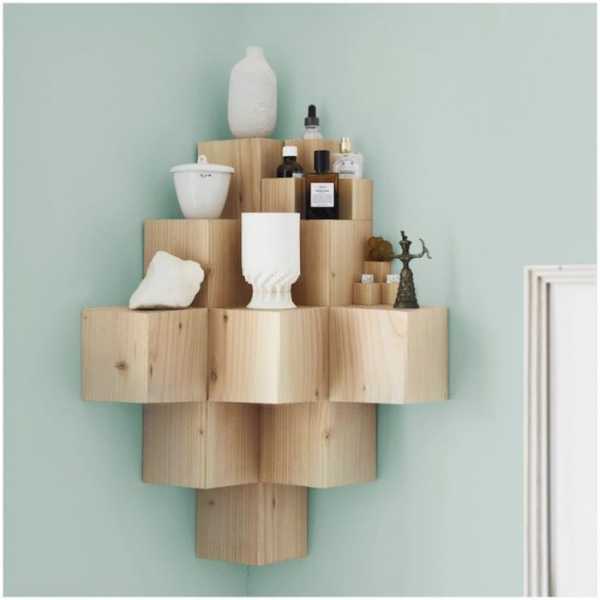 Уникальный дизайн угловой полки из деревянных кубиков