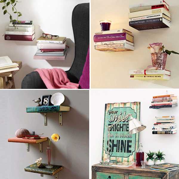 А сегодня расскажем, как сделать такие полки-невидимки своими руками из самих книг. Потрясающий шанс быстро обзавестись таким аксессуаром и при этом сэкономить в несколько раз (!) — по сравнению с магазинной моделью.