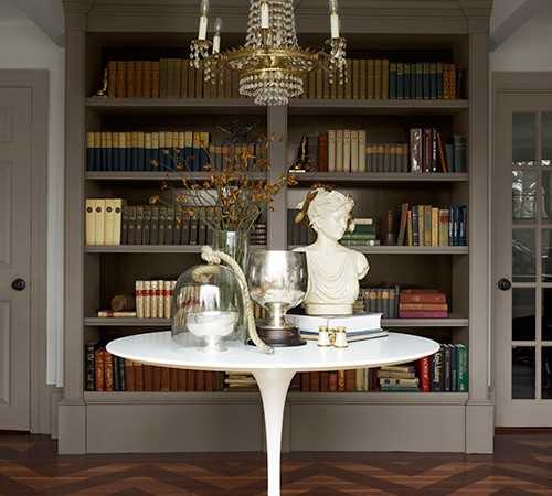 Очень эффектно обрамлять книжными полками и шкафами дверные проёмы. И на них вовсе не обязательно хранить только книги! Можно, например, вазы, подсвечники, фоторамки.