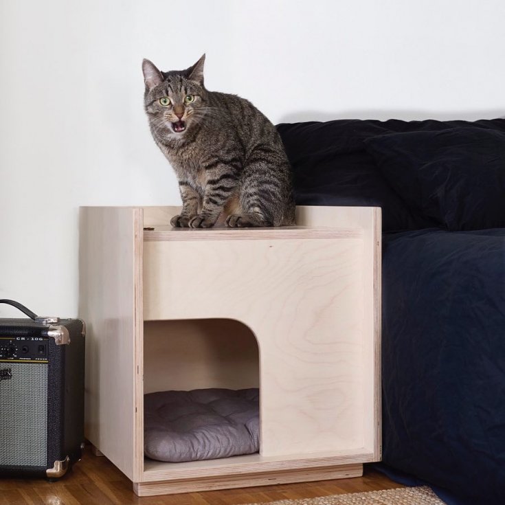 Своими руками также можно создать домик для кошки и из фанеры. При определенных навыках это не составит особого труда, главное — подготовить материал.