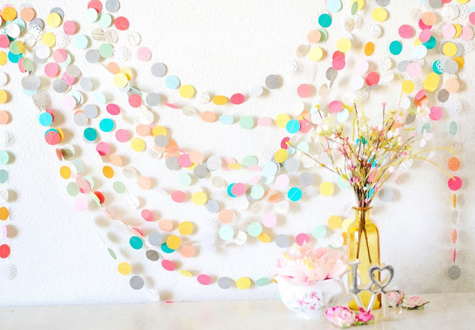 Украшения из бумаги, в частности цветы и помпоны, придадут помещению, в котором вы будете праздновать особую атмосферу — праздничную и торжественную. Чаще всего украшают зоны, к которым хотят привлечь внимание, например, Candy Bar или стенгазету (фотоколлаж). Бумажными помпонами и вертушками украшают стены и потолок.Если этот вариант украшения вам по душе — начинайте делать цветы хотя бы за неделю до дня рождения, предварительно продумав подходящую для вас цветовую гамму.