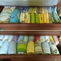 Пододеяльники сложить несколько раз, так чтобы они занимали меньше места.Стопки не должны быть слишком высокими