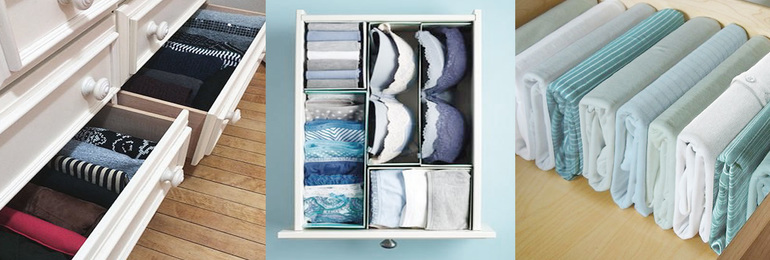 В таком виде белье принадлежности занимают очень мало места, аккуратно смотрятся и легко извлекаются. Если вам не страшны заломы, то этот вариант для вас: