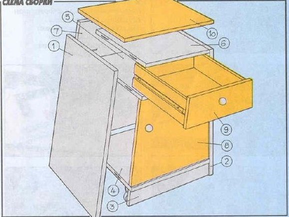 У профессиональных сборщиков схема сборки кухонной мебели, включая столы, будет зависеть от типа конструкции.