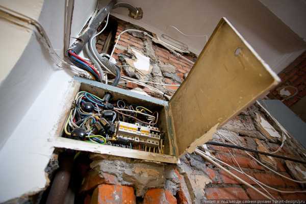 05. Электрический ящик полон под завязку и с трудом шевелится. Его придется постараться утопить максимально в стену. И закрыть более изящной накладкой. С трубой и кабелем вверху буду разбираться. Об этом будет рассказано дополнительно.