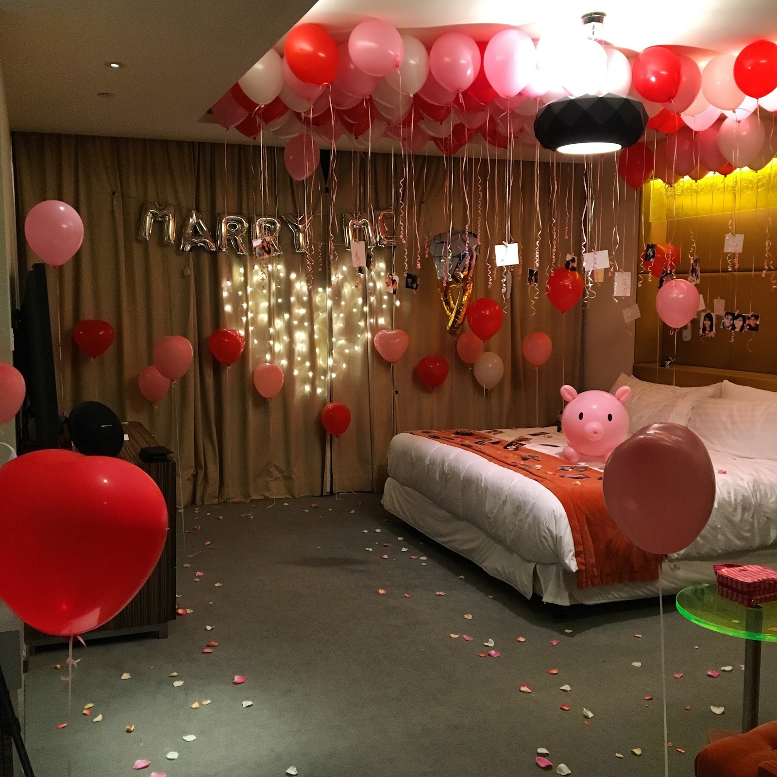 Украшение кровати воздушными шарами без гелияДанный вид украшения комнаты отлично подойдет для любимой вами девушки или жены: