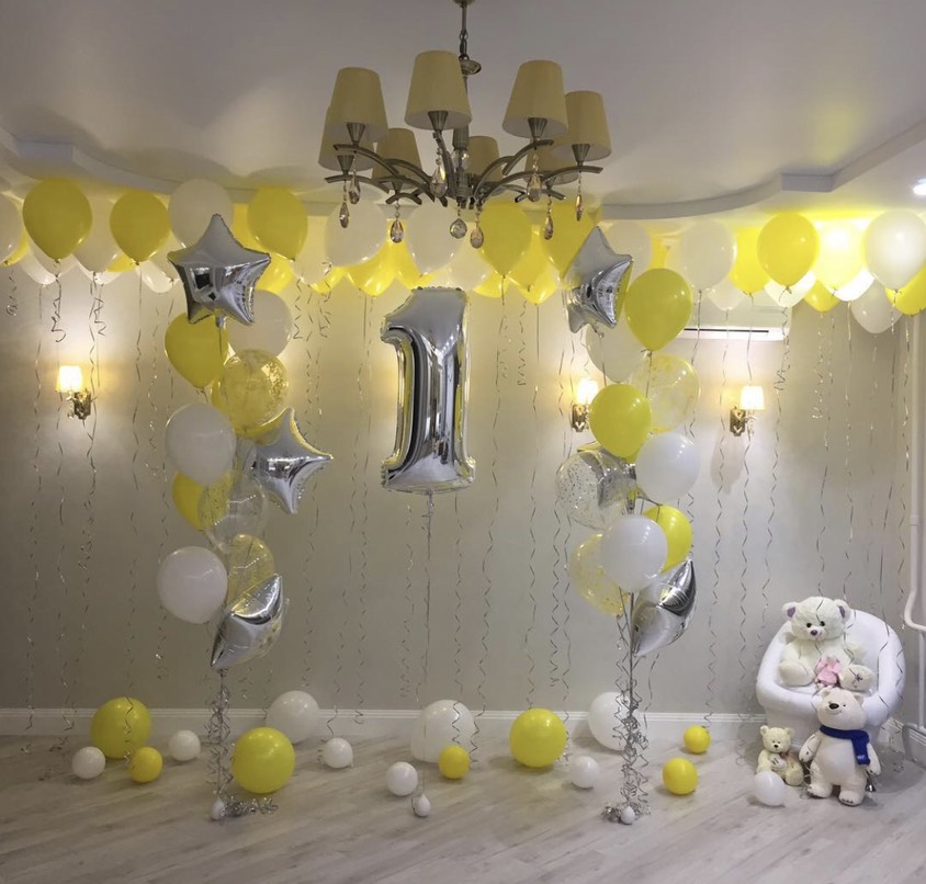 Первое, что необходимо уточнить перед украшением — это цвет воздушных шаров. Вам будет проще всего определиться, если у виновника торжества есть любимый цвет, ведь тогда сразу можно отбросить все остальные варианты в сторону и начать украшать комнату “в любимых цветах”, однако, если любимый цвет отсутствует, то вы можете почерпнуть много полезной информации по поводу выбора цвета в следующем абзаце.