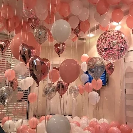 Всем известно, что розовый цвет означает романтичность и любовь, а это как раз то, что любят девушки любого возраста, поэтому, если вы хотите сделать сюрприз в виде украшения комнаты воздушными шарами для любимой девушки или дочки — розовый цвет станет идеальным вариантом.
