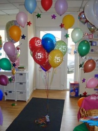 Если их надуть самим обычным способом, то тогда им нужна подставка, либо просто закрепите их на стене.