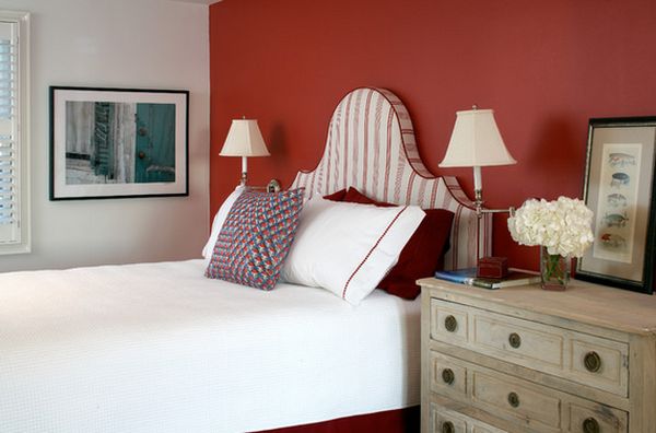 Посмотреть в галерееКрасный, белый и синий вместе взятые идеально подходят для создания декора в морской тематикеБлокировка цвета: Несмотря на то, что красный сам по себе является очень сильным цветом, сочетание его с другим ярким оттенком может привести к очень гармоничный вид для вашей спальни. Если два цвета чем-то похожи, например красный и фиолетовый, то эффект будет очень красивым. Вы также можете сочетать красный с оранжевым.