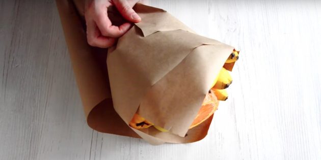- верхняя часть бумаги не должна помяться, внизу же вы сжимаете или просто закрепляете лентой или все той же бечевкой;