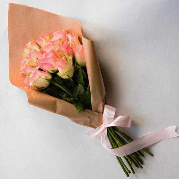 Совет! Если вы совершенно ничего не понимаете во флористике, то лучше не экспериментируйте в первый раз с разными цветами. Монобукет даже в одном оттенке в сочетании с бумагой-крафт будет выглядеть идеально.