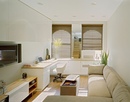 - Мебель подбирайте простую, желательно с прямыми линиями и функциональную. По цвету желательно, чтобы она не отличалась от общей цветовой гаммы комнаты. Избегайте крупной мебели. Лучше поставить средний диван и одно небольшое кресло, чем полноценный мягкий уголок.