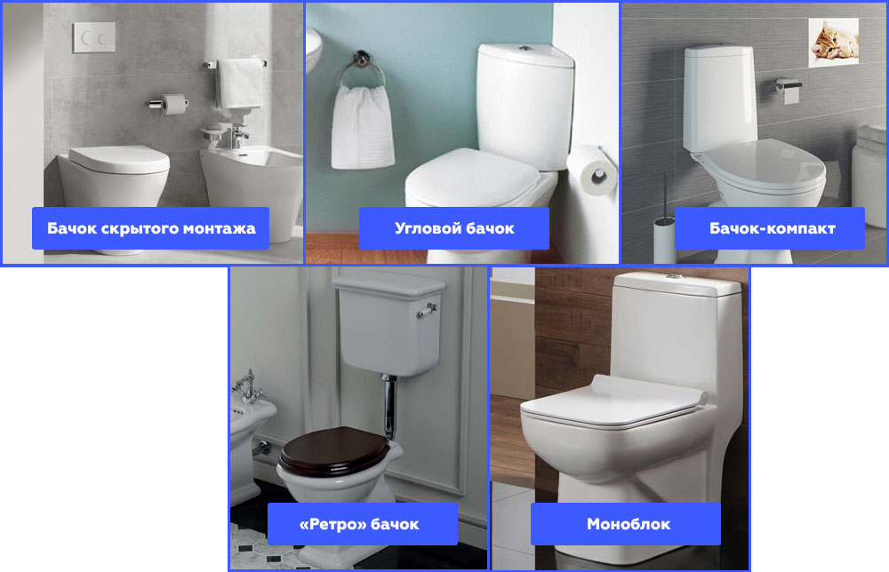 - Типы бачков для унитаза, систем инсталляций и бачков скрытого монтажа;