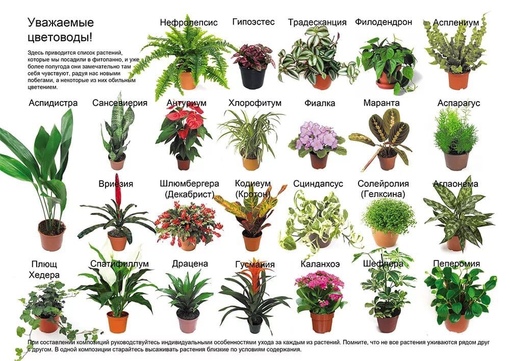 ароидные, маленькие и большие, аспарагус серповидный и восковой плющ, злаковидные и другие разновидности