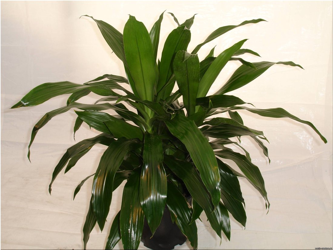 - Аспидистра. Неприхотливое растение с пышной листвой, которое часто используют в оформлении интерьеров. Вырастает не выше 70 см и растет довольно медленно, долго сохраняя первоначальный вид. Поливать достаточно 1 раз в неделю. Растение хорошо чувствует себя и в тени, и на подоконнике, однако от прямых солнечных лучей его все же лучше беречь.