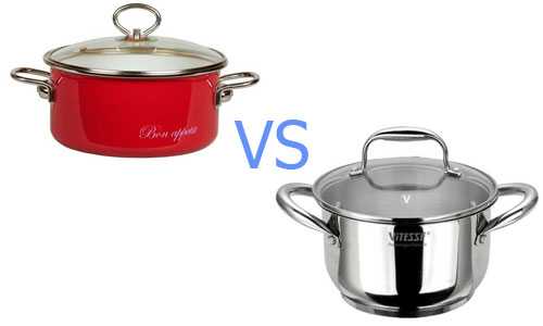 Кастрюли эмалированные расположились между этими двумя группами – гладкое, неповрежденное эмалированной покрытие не является вредным, а, наоборот, такие горшки рекомендуются для приготовления еды для аллергиков, маленьких детей и пожилых людей. Однако скол или царапина на эмали внутри кастрюли, и это стало опасно для нашего здоровья. Кастрюли эмалированные, следовательно, требуют очень бережного использования!