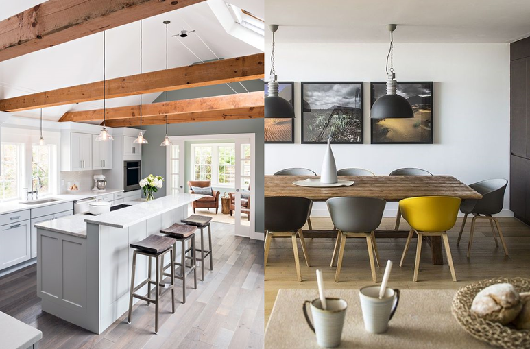 В интерьерном дизайне ритм могут задавать несколько предметов мебели. Интересный прием композиции в интерьере — «перебить» ритм. Поставьте в ряд несколько одинаковых белых стульев, заменив один из них цветным.