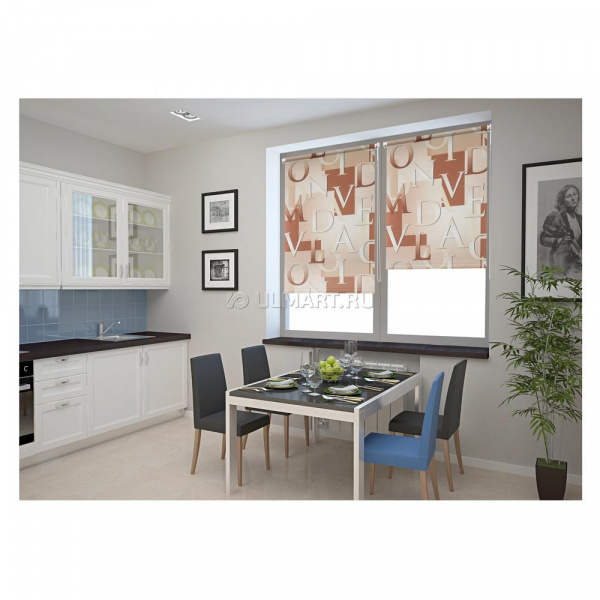 Рулонные шторы для кухни обычно имеют тканевое полотно из полиэстера, благодаря чему они отличаются высокой прочностью и устойчивостью к агрессивным воздействиям, просты в эксплуатации и уходе, доступны по стоимости. Одно из важных преимуществ таких штор — большой ассортимент. Они выпускаются самых различных расцветок и с разными рисунками, что позволяет легко подобрать нужную модель в соответствии со стилистикой и особенностями интерьера кухни.
