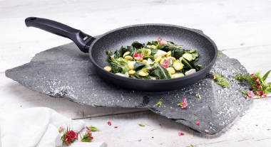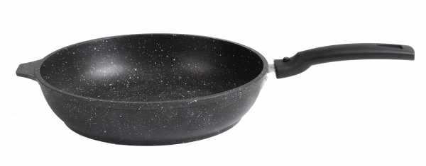 К посуде с антипригарным покрытием относится и гранитная сковорода . Другое ее название – мраморная или каменная. Наряду с титановыми и алмазными она имеет высокую цену. Такая стоимость оправдывается устойчивостью к механическим повреждениям и длительным сроком службы. Кроме того, гранитная крошка совершенно экологичная и безопасная для здоровья. Недостатком же является низкая устойчивость к перепадам температур.