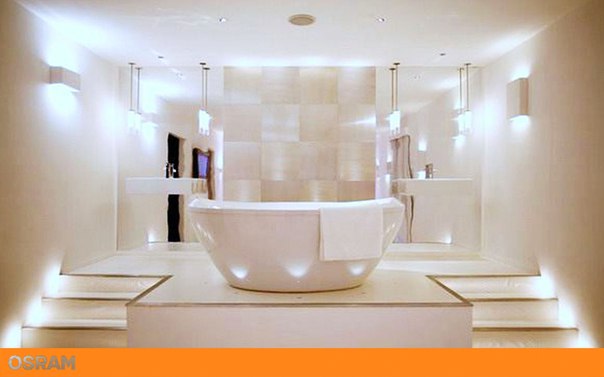Использование светодиодного освещения поможет создать незаурядный, оригинальный дизайн ванной комнаты