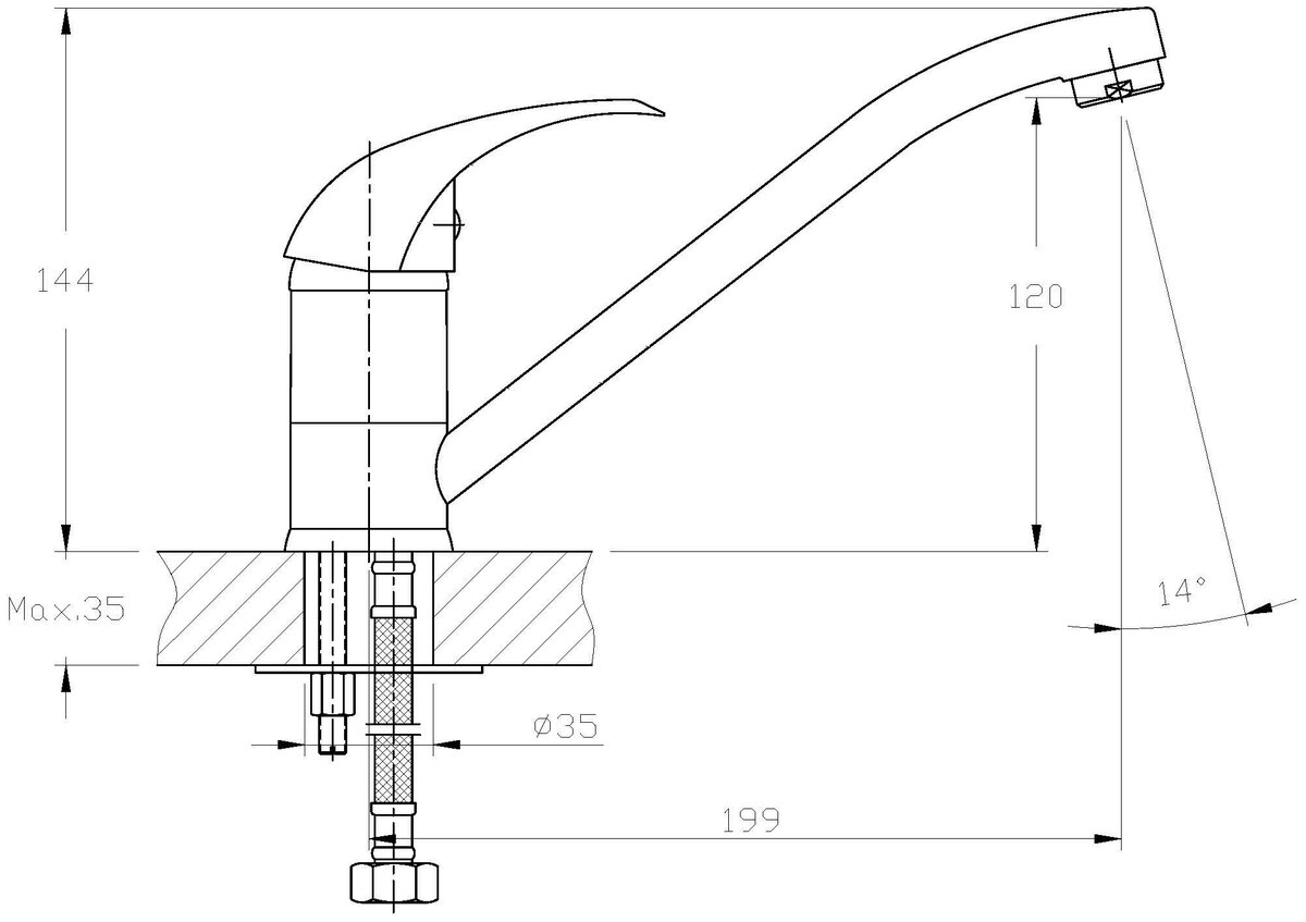 Регулируется температура отдельным краником, расположенным под раковиной. Стоит установить нужный показатель один раз, и смеситель будет постоянно выдавать воду заданной температуры.