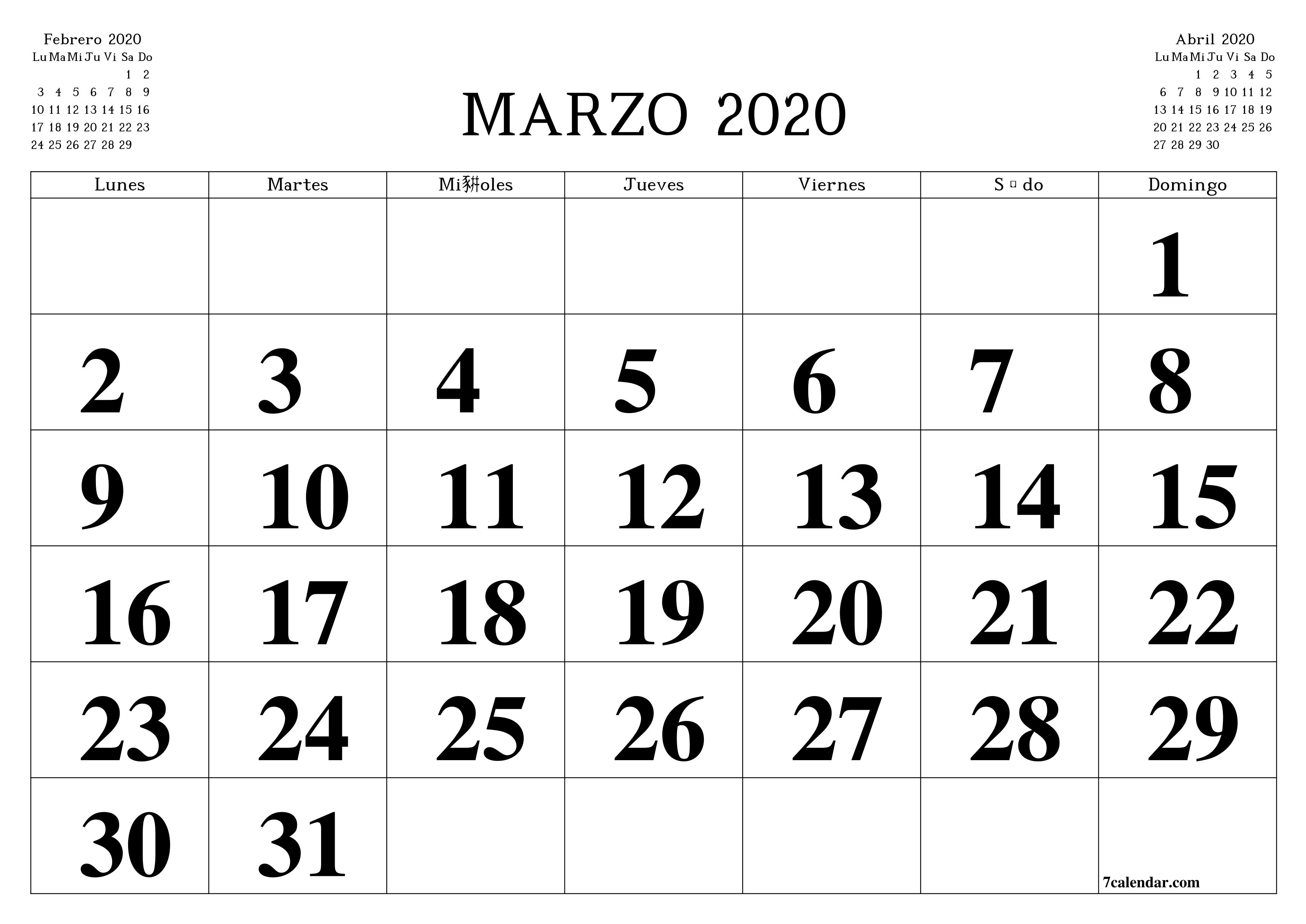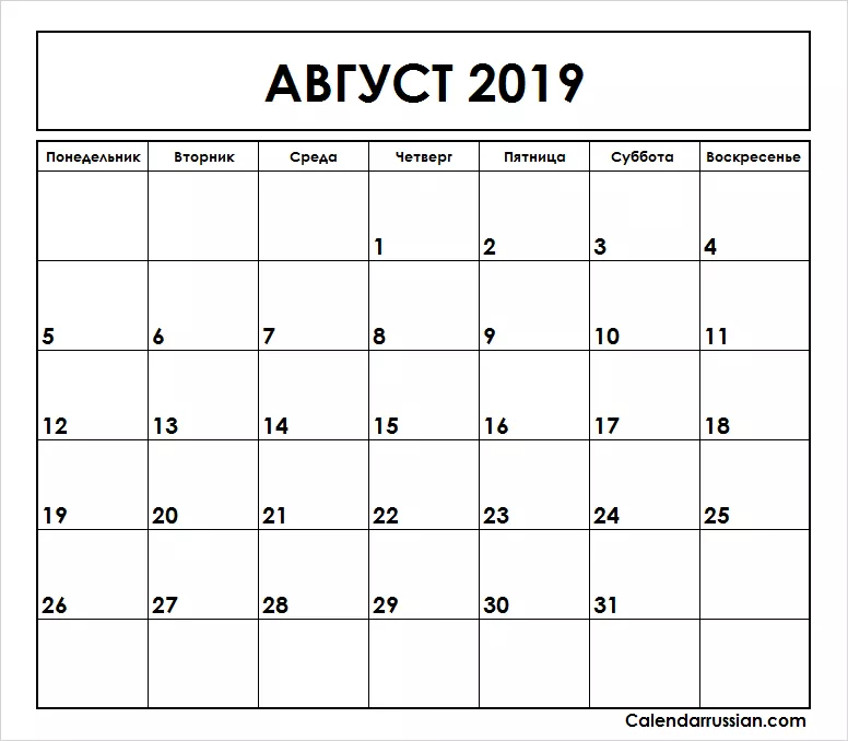 Печать пустого календаря