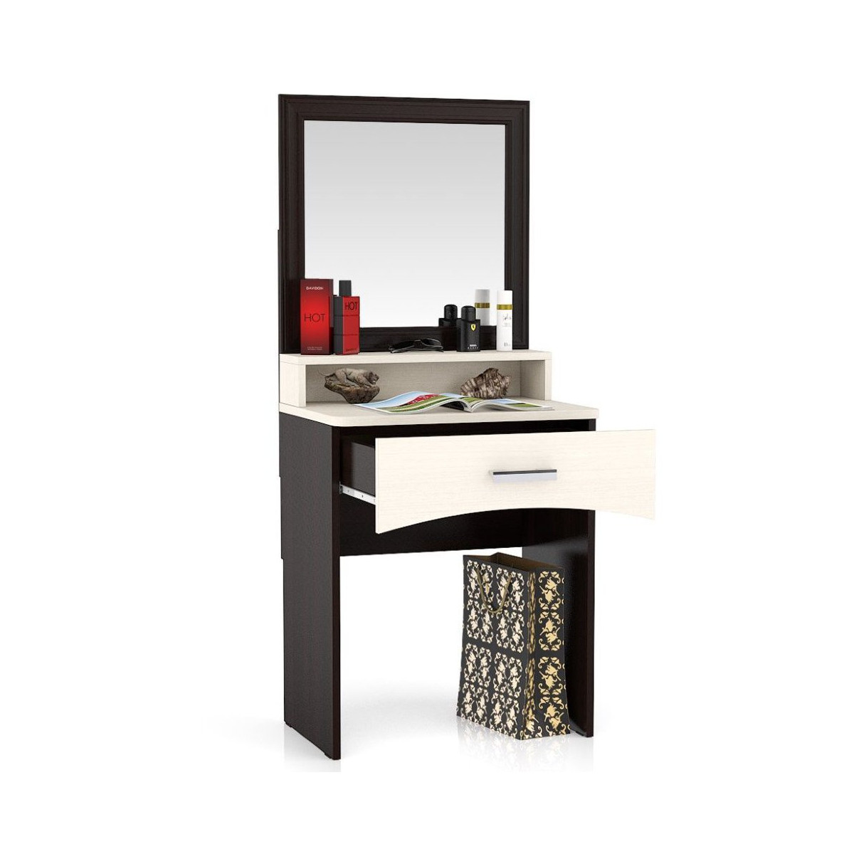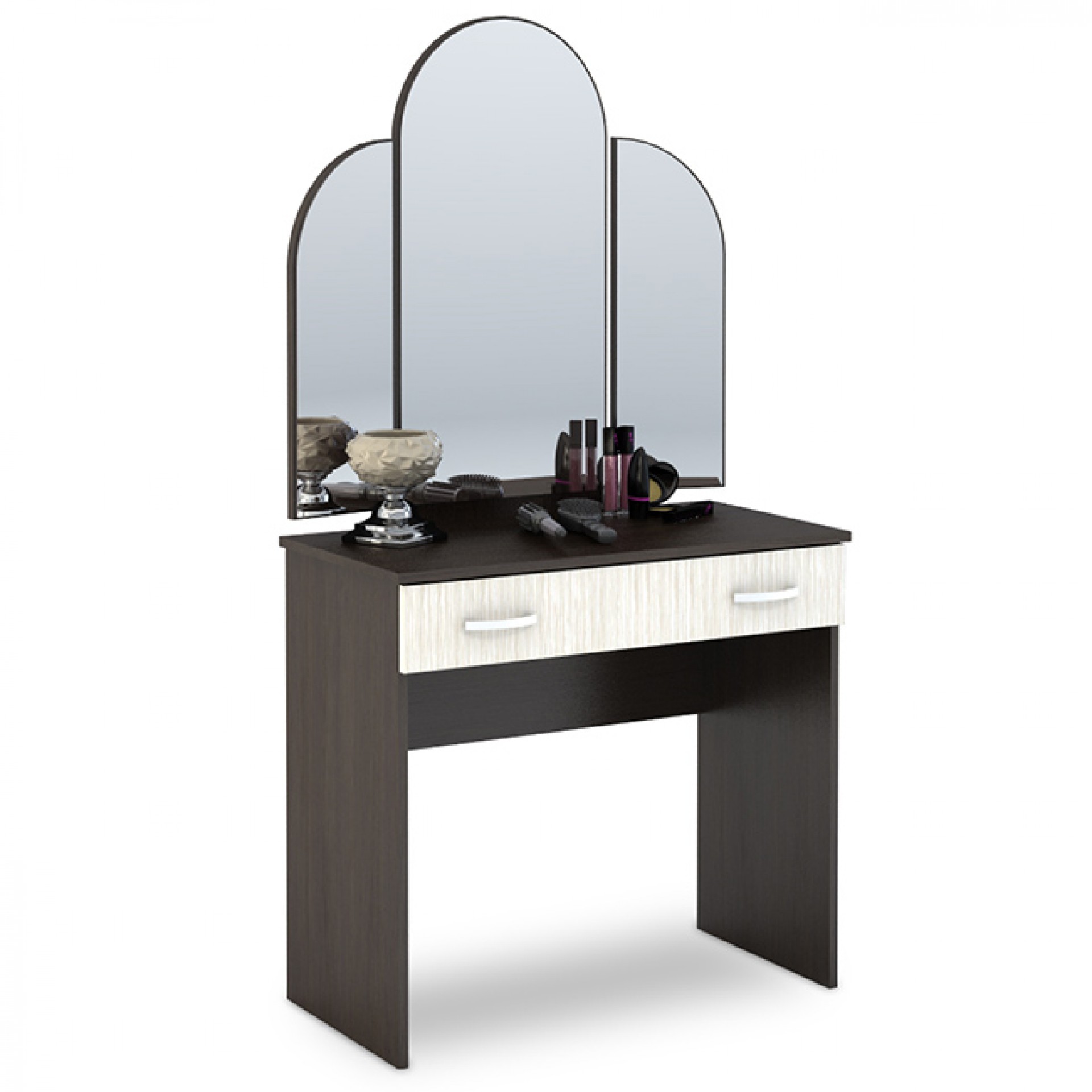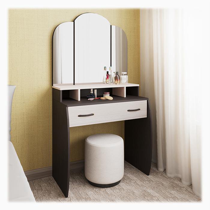 Во первых плюс такого столика что в нем не большое углубление что позволяет беспрепятственно близко находится возле зеркала, чтобы тщательно рассмотреть все черты макияжа.