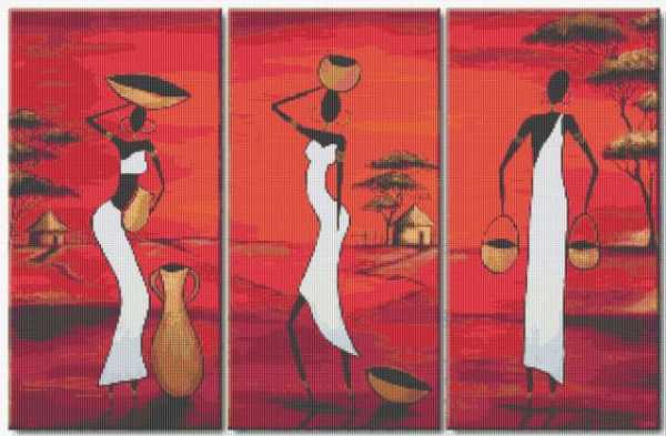 Наверное потому что зима, а так хочется солнышка—потянуло на африканскую тематику Эти картины с красивым ярким закатом, черными фигурами и характерными низенькими домиками очень эффектно смотрятся в шерсти. Ряд примеров таких работ можно посмотреть у меня в магазинчике .