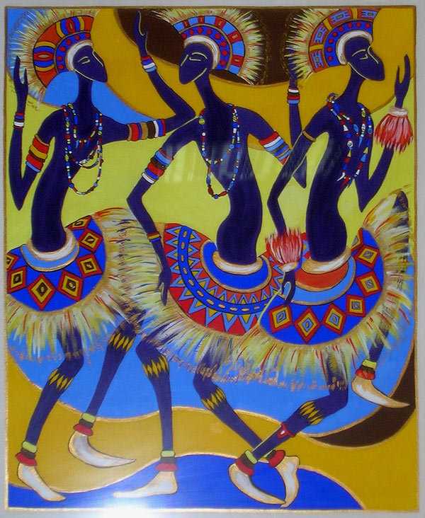 Что же такое Африканская живопись!? Если попытаться рассказать о ней в нескольких словах, то это: одноцветный фон, с несколькими оттенками; основной мотив произведения занимает практически всё пространство; отсутствует перспектива; присутствие орнамента и неких знаков; сама живопись выполнена широкими и размашистыми мазками или линиями; гротескные формы; динамика. Только со стороны это кажется примитивным. Многие авангардисты прошлого и нашего времени находят в этом особую гениальность. Такие формы современной живописи, как кубизм, примитивизм и некоторые другие были созданы только благодаря африканскому искусству.